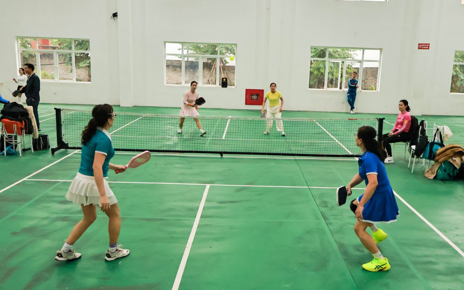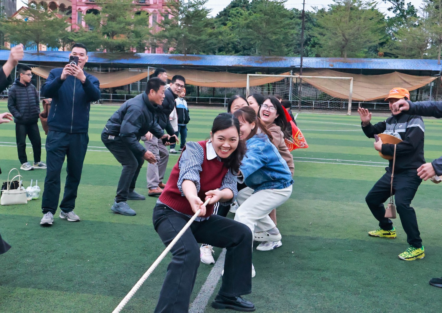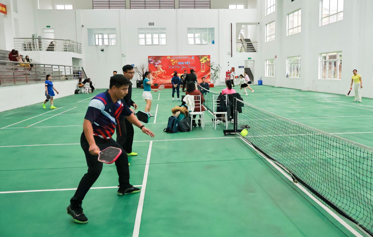 Bên cạnh đó, các hoạt động giao lưu thể thao như Pickleball và các trò chơi dân gian (kéo co, nhảy bao bố, nhảy dây, nhảy dân vũ) trên nền nhạc Xuân sôi động đã tạo nên một ngày hội tràn đầy tiếng cười cho các gia đình cán bộ, viên chức.