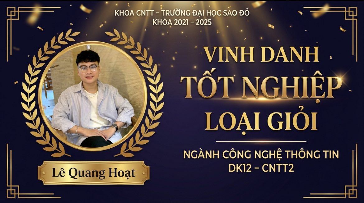 Cầm trên tay tấm bằng kỹ sư, các em đã chính thức gia nhập đội ngũ nhân sự chất lượng cao, sẵn sàng đóng góp cho sự phát triển công nghệ của đất nước. Khoa tin rằng, với nền tảng kiến thức vững chắc tại Đại học Sao Đỏ, các em sẽ: Trở thành những chuyên gia phần mềm, chuyên gia mạng và bảo mật tài năng, luôn giữ vững ngọn lửa nhiệt huyết và tinh thần đổi mới sáng tạo, tỏa sáng và khẳng định thương hiệu sinh viên Sao Đỏ tại các doanh nghiệp trong và ngoài nước.