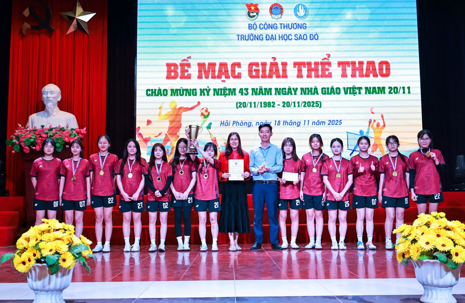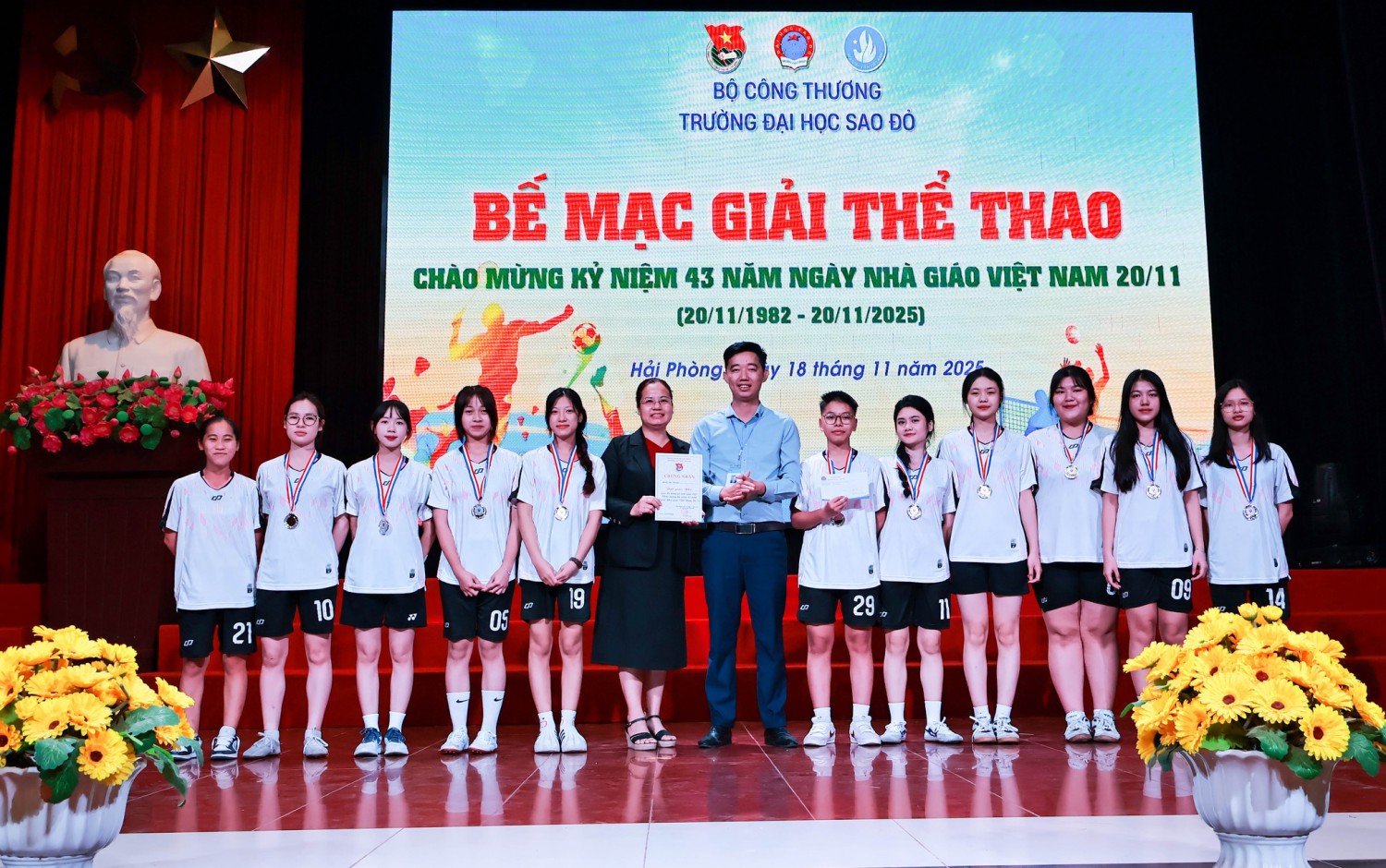 Hòa chung không khí cả nước hân hoan hướng tới kỷ niệm 43 năm Ngày Nhà giáo Việt Nam (20/11/1982 – 20/11/2025), Đoàn Thanh niên Trường Đại học Sao Đỏ đã tổ chức chuỗi hoạt động phong phú, hấp dẫn, tạo nên một tuần lễ thể thao và sáng tạo đầy ý nghĩa. Chiều ngày 19/11/2025, Nhà trường đã long trọng tổ chức Lễ Bế mạc và Trao giải, vinh danh các tập thể, cá nhân xuất sắc đã đóng góp vào sự thành công chung của các hoạt động.