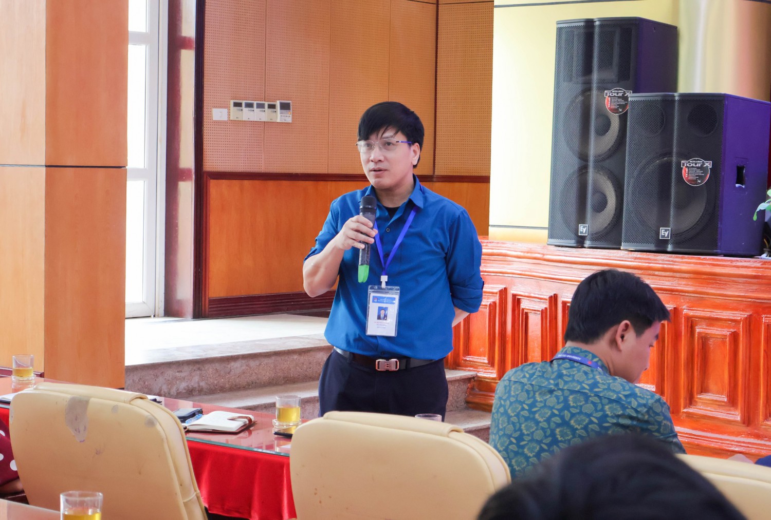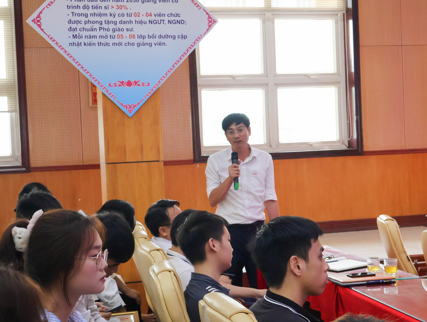 TS. Đỗ Văn Đỉnh – Phó Bí thư Đảng ủy, Phó Hiệu trưởng Nhà trường chủ trì. Cùng tham dự có lãnh đạo các Phòng, Khoa, Trung tâm, Bí thư Đoàn Thanh niên và các đại diện sinh viên là lớp trưởng, bí thư chi đoàn trong toàn trường.