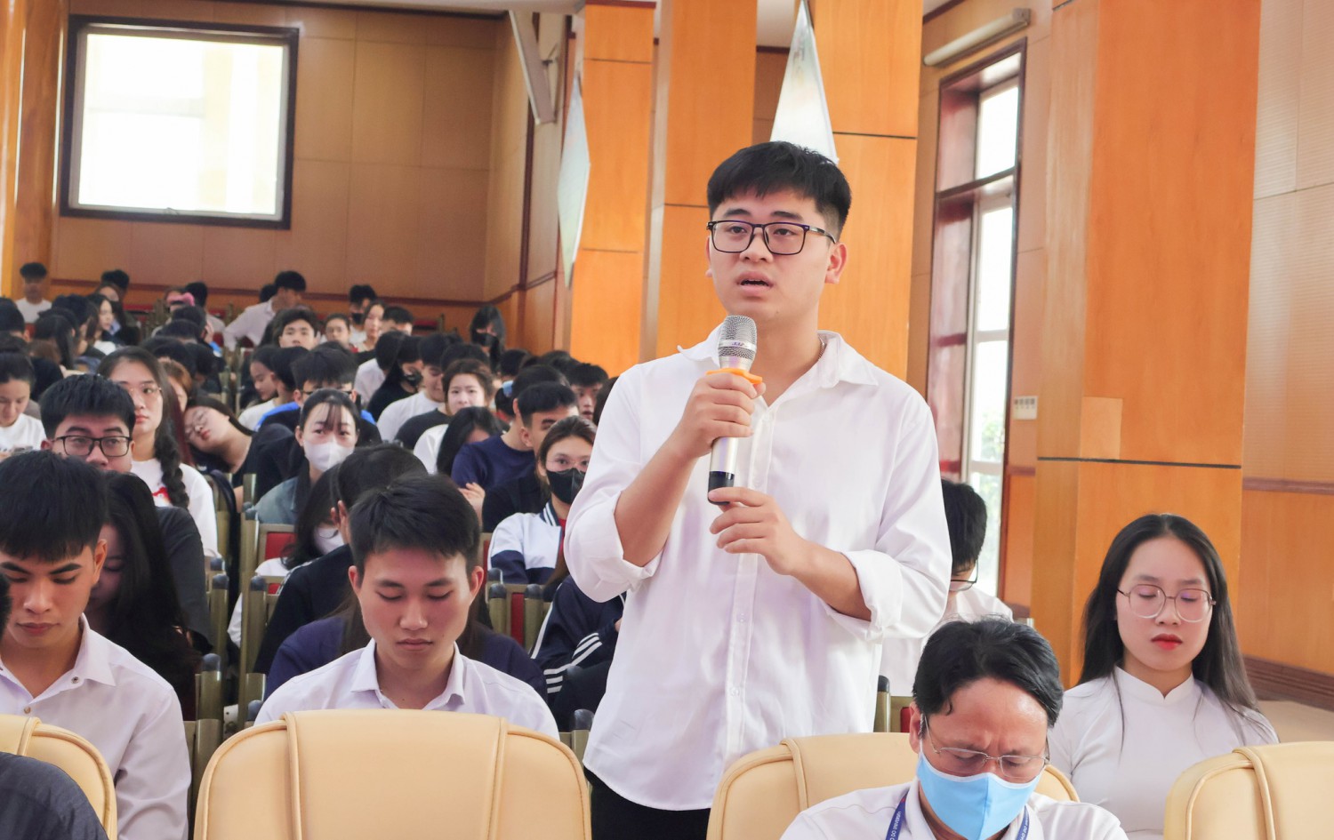 Trong phần đối thoại, với tinh thần dân chủ, cởi mở, lãnh đạo Nhà trường đã được nghe nhiều ý kiến phát biểu của các đại biểu sinh viên trao đổi và đề xuất về các vấn đề: Hoạt động đào tạo; cơ sở vật chất phục vụ học tập; quản lý, giáo dục sinh viên; hoạt động kết nối và phục vụ cộng đồng…