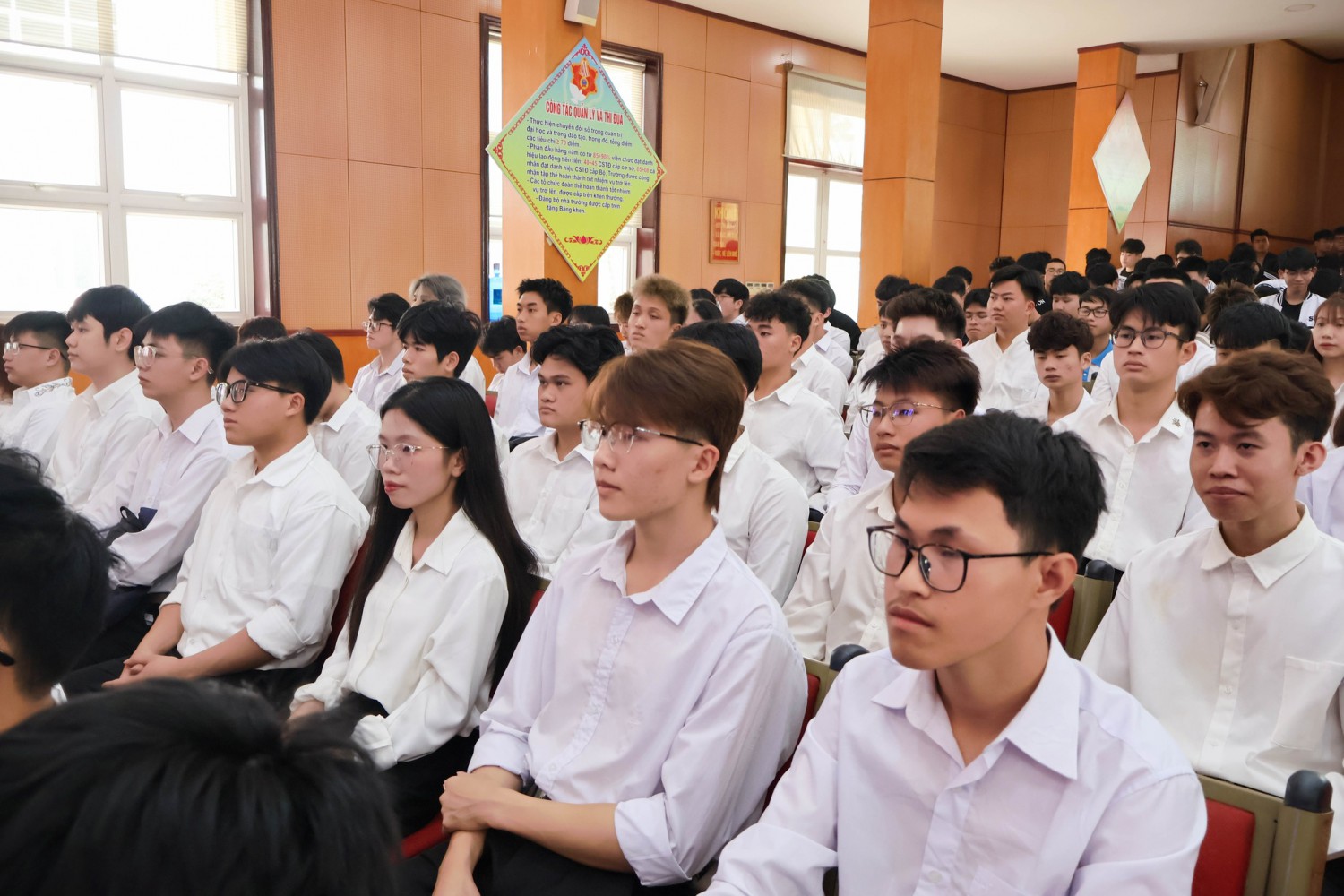 Không chỉ dừng lại ở điểm số trên bảng bảng vàng, các bạn còn là những nhân tố năng nổ trong các phong trào Đoàn, Hội, biết cân bằng giữa việc tiếp thu tri thức chuyên môn và rèn luyện kỹ năng mềm. Học bổng này chính là sự ghi nhận xứng đáng cho tinh thần "vượt lên chính mình", biến áp lực thành động lực để khẳng định bản sắc sinh viên Sao Đỏ: Tự tin, Sáng tạo và Bản lĩnh. Những gương mặt rạng rỡ trong buổi lễ vinh danh chính là nguồn cảm hứng mạnh mẽ, lan tỏa năng lượng tích cực đến toàn thể sinh viên nhà trường, minh chứng rằng: Mọi sự cố gắng chân chính đều sẽ gặt hái được những thành quả ngọt ngào.
